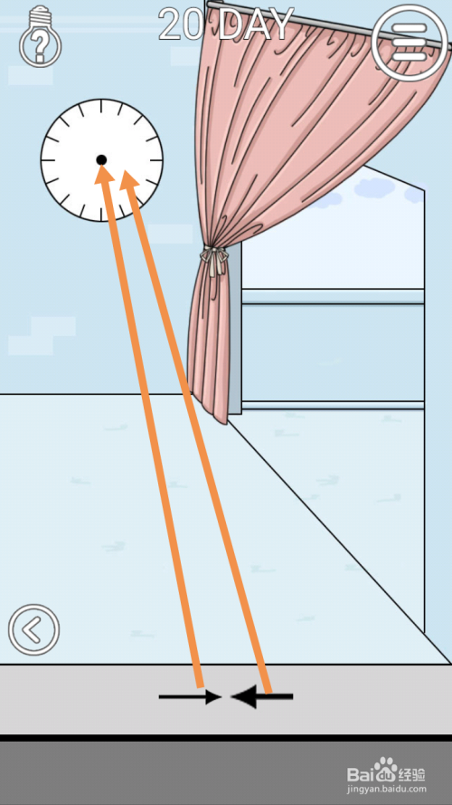 在右边房间里,将摆布箭头拖动到钟上。