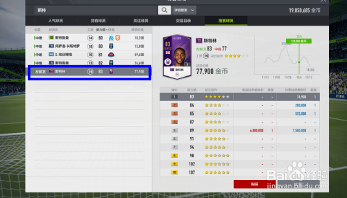 之后会呈现合适的球员,选择好球员后,单击这个球员姓名,后面会呈现强化能力值页面,强化越高球员价钱越高,选择好强化能力值后单击那一排。