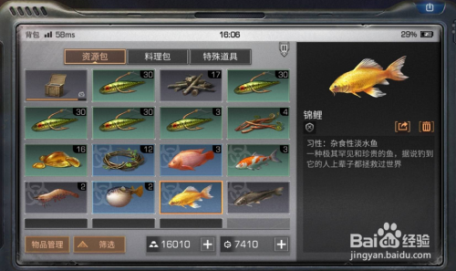 下拉页面找到垂钓礼包并采办,礼包中就包含了10个虾饵。