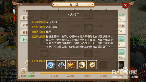 上古妖王可以给很多道行,还可以获得妖石及装备。