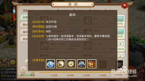 副本可以获得年夜量道行,还可以获得装备和罕见道具的奖励,天天可一次,30级就可以做。