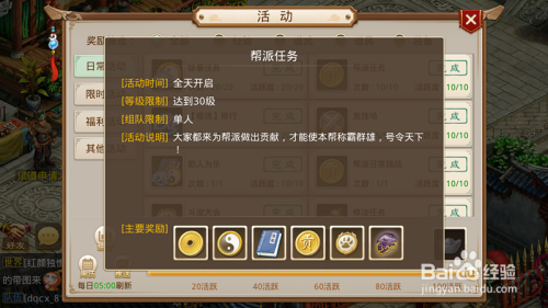 帮派使命及帮派日常挑战。