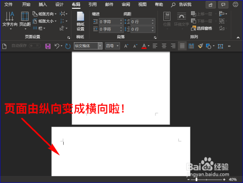 最后我们在扩展框中选择“横标的目的”,这时会发现新的页面就由纵标的目的酿成横标的目的啦!如图所示: