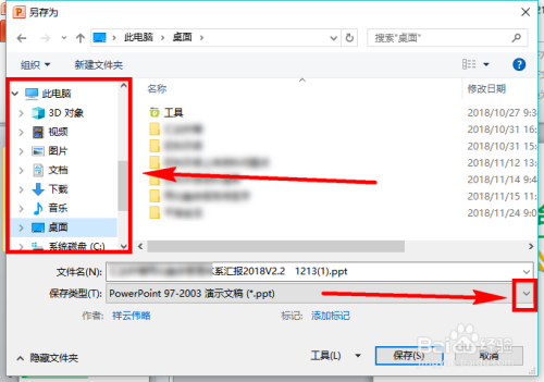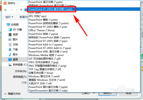 然后在左侧的窗口中选择好文件的存储路径,然后点击文件类型后面的下拉箭头。