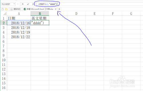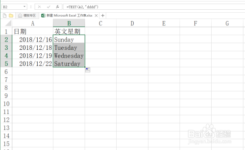 教程以新建的Excel文档为例来介绍如何快速获得指定日期对应的英文礼拜。