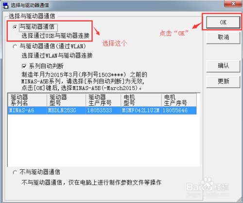 将驱动器与电脑经由过程编程线毗连起来。然后打开松下驱动器设置软件PANATERM,将软件与驱动器毗连上。