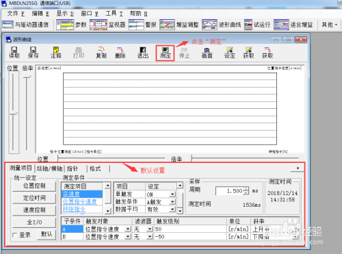 点击波形曲线界面的“测定”,界面的下方会呈现“期待触发”。触发的前提就是该驱动器收到脉冲起头定位。