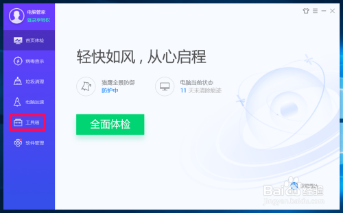 在打开的电脑管家窗口中,点击窗口左侧的【东西箱】;