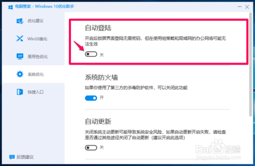 我们点击【开关】处的小黑点(不克不及使开关处于【开】的位置),打开用户帐户 - 主动登录对话框;