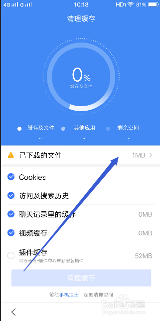 然后,就是清理缓存了,主动扫描完当作后,点击底部的清理缓存按钮。