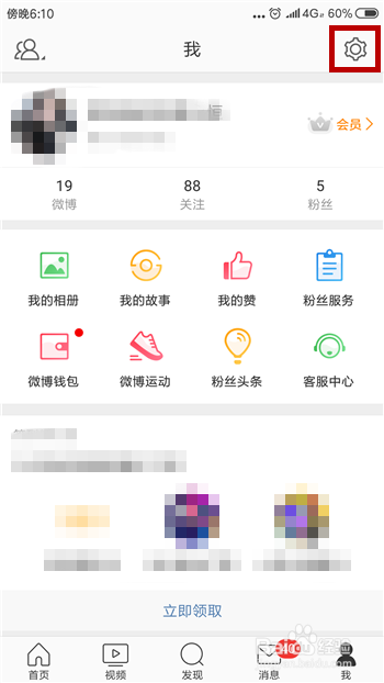 打开了微博的小我本家儿页后点击右上角的【设置】按钮。