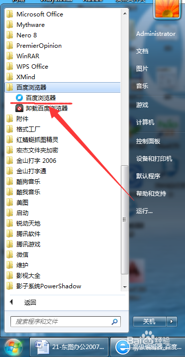 点击起头——所有法式——百度浏览器;