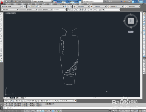 点击【多段线】,在作图区域绘制出花瓶一半的图案,经由过程【镜像】完当作整个花瓶的图案绘制(如图所示);