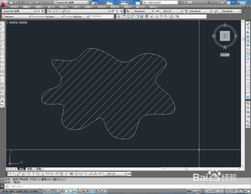 打开AutoCAD2012软件,设置好【特征】中的线型、线宽以及图层颜色等参数后,点击【样条曲线】,在作图区域绘制一个异形曲线图案(如图所示);