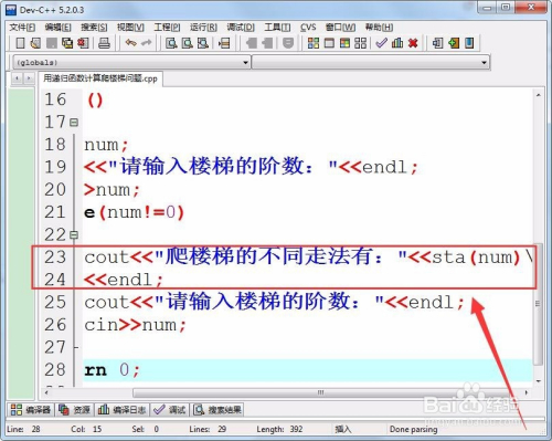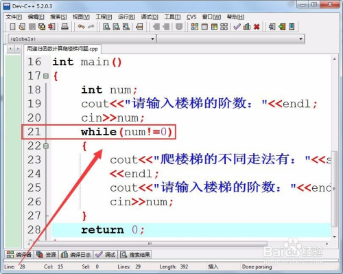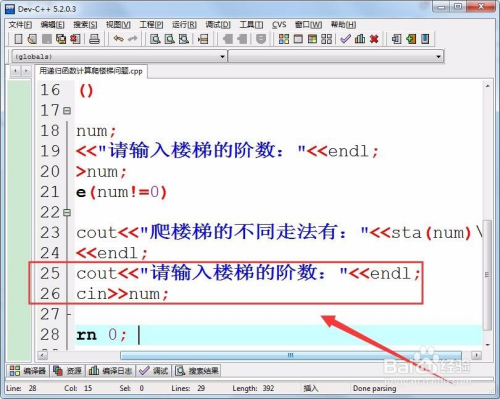 继续提醒输入楼梯阶数,以实现方式的计较。