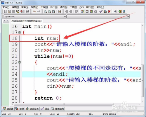 接着,输入走到的楼梯阶数,保留在变量num中。