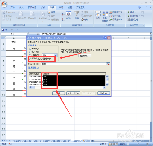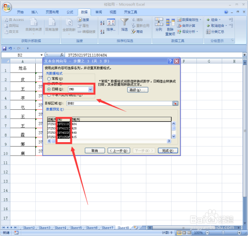 在身份证号码中的出生日期前后别离成立朋分线后,单击“下一步”