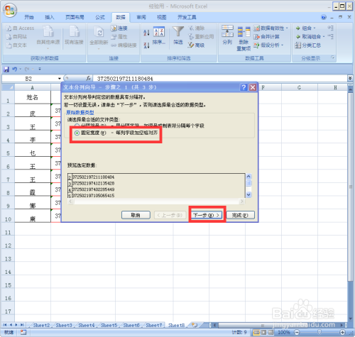 在文天职列标的目的导中,选中“固定宽度”单击“下一步”