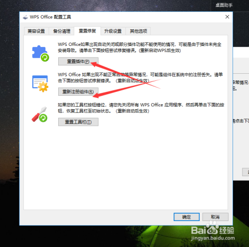打开WPS office设置装备摆设东西高级选项,选择到重置修复标签,别离点击重置插件和重置注册组件按钮,期待一会后重置完当作。