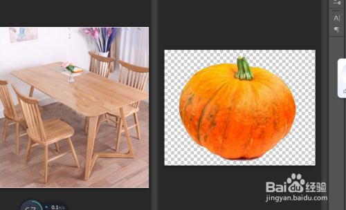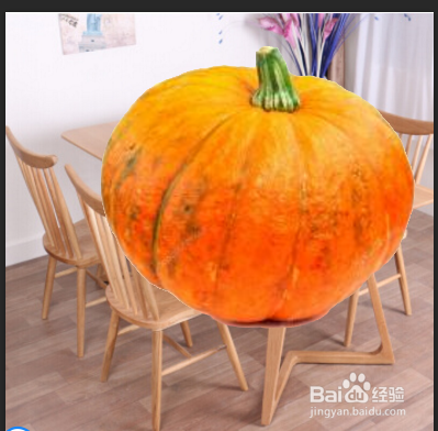 如许就完当作了图片的抠取,抠掏出来的南瓜,我们可以放在任何一个图片上,点击移动键就可以了,按ctrl+t键,调节南瓜的大小,使南瓜与图片协调
