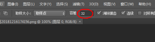 拔取左侧菜单的魔棒东西,在上面菜单选择它的容差,容差就是指,固然是单一颜色,可是里面仍是有深浅转变,容差值越年夜,对深浅颜色的包涵性也就越年夜