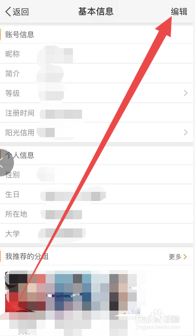 然后就可以进入到小我根基信息页面了。在小我根基信息页面内点击右上角的编纂按钮。