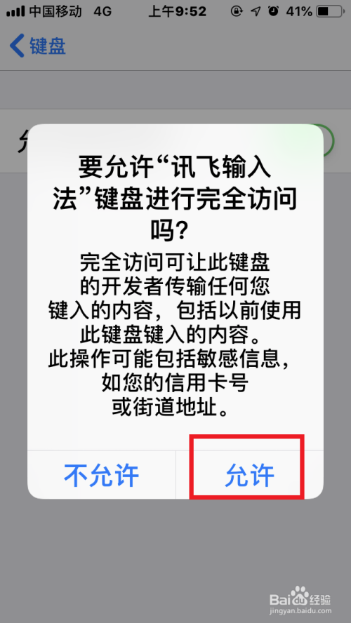 点击启用“许可完全拜候”——“许可”,启用“讯飞输入法”权限。