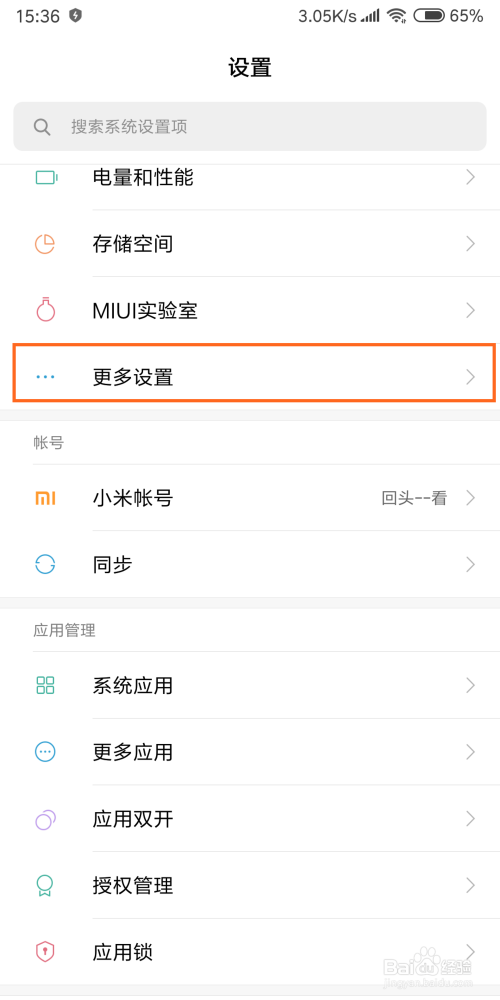然后,下拉找到更多设置,点击一下。