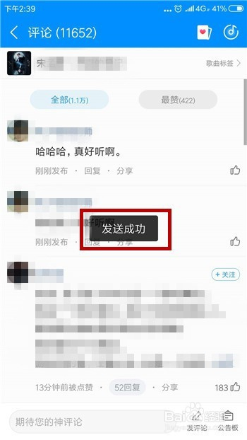 点击后系统会提醒我们发送当作功,然后在评论区就能找到我们发布的评论了。