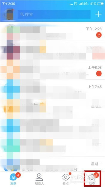 进入到qq动静首页后找到并点击右下角的【动态】选项。