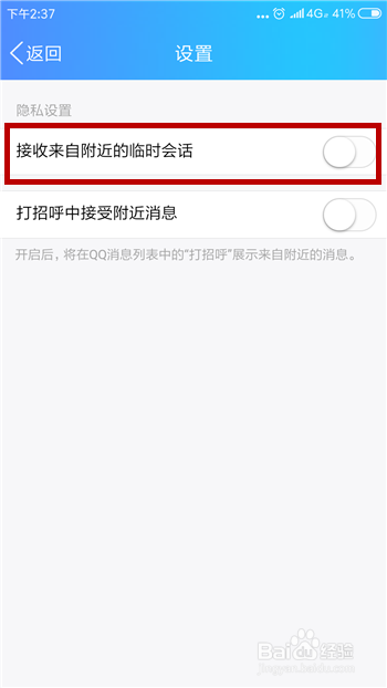点击之后就会封闭这个功能了,如许别人在四周就不克不及发送动静给我们了。