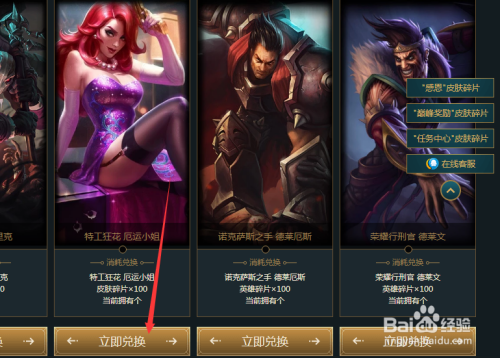 最后就是点击“前去兑换”,随后会跳转到网页,点击“当即兑换”,你就可以获得想要的英雄皮肤了,此中图标、紫色宝箱和钥匙碎片不是需要跳转到网页兑换的。