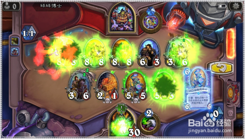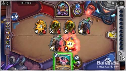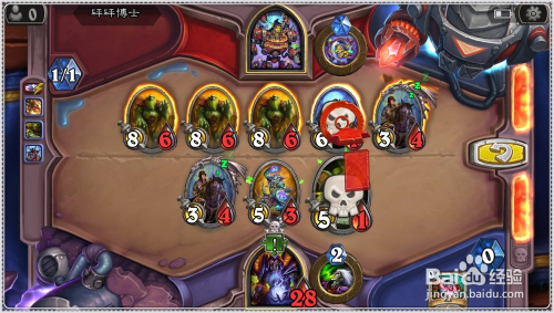 接着利用场中的5/1劫持者,对对面6/1狼人欺诈者倡议进犯,两者同时消亡。