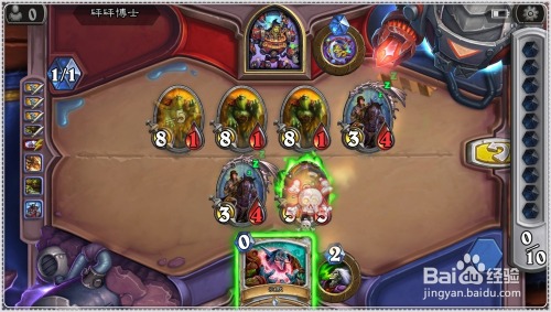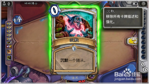 将手中0费的缄默打出,将已方的5/5残暴的恐龙方士缄默了。