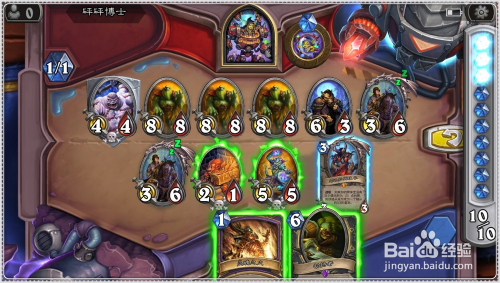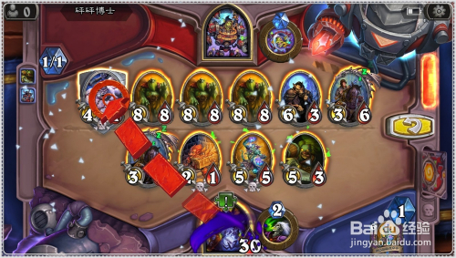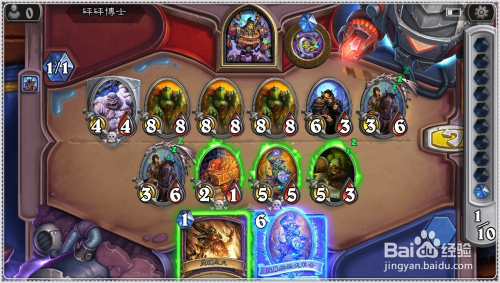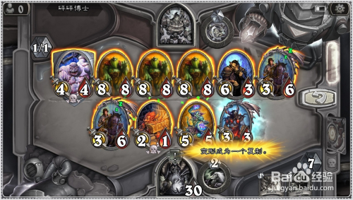 接着将手中的6费的劫持者牌(连击:将一个侍从移回其拥有者的手牌)打出,将前面复制获得的3/3残暴的恐龙方士收受接管手中。