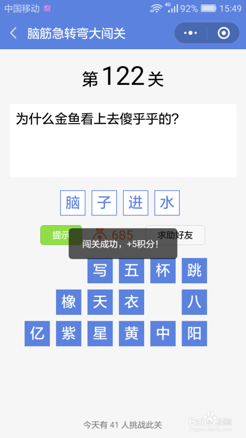 第122关谜底是脑子进水。