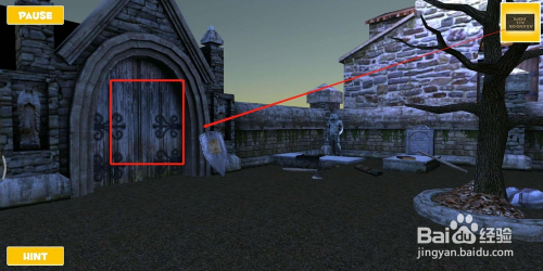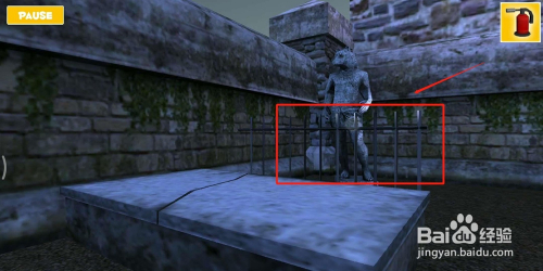 瞄准左边的雕栏利用刚获得的道具,获得铁棍