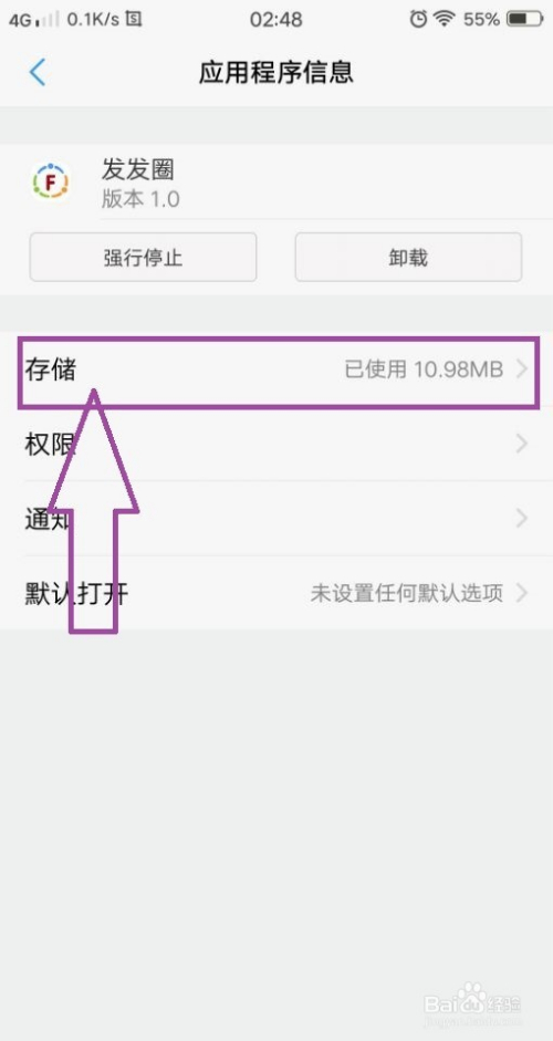 点击“存储”,进入到发发圈的存储页面,在页面上我们可以看到“断根数据”,然后点击“断根数据”,将应用法式的数据先从我们的手机中断根失落。
