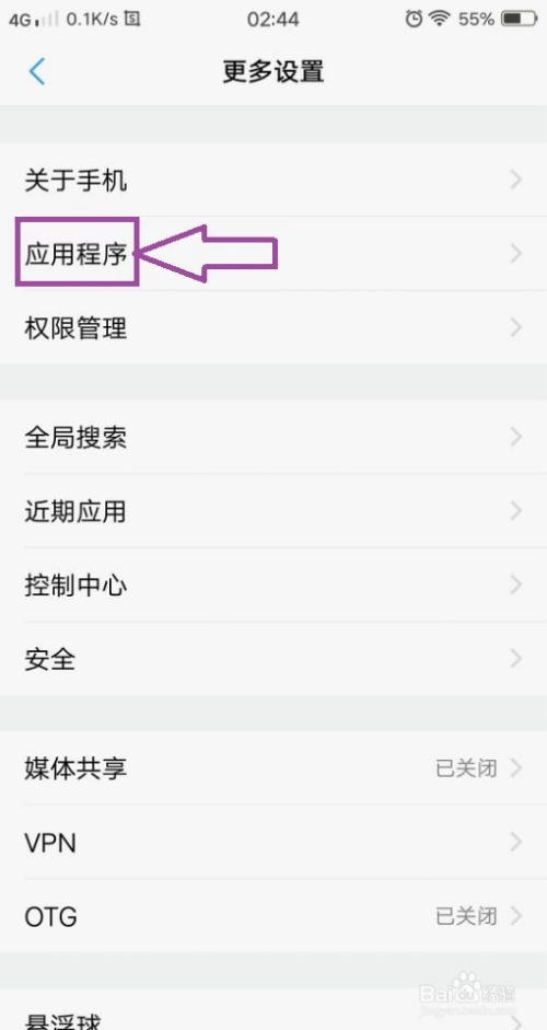 点击“更多设置”,进入到手机更多设置的窗口页面,在页面上我们可以看到“应用法式”。