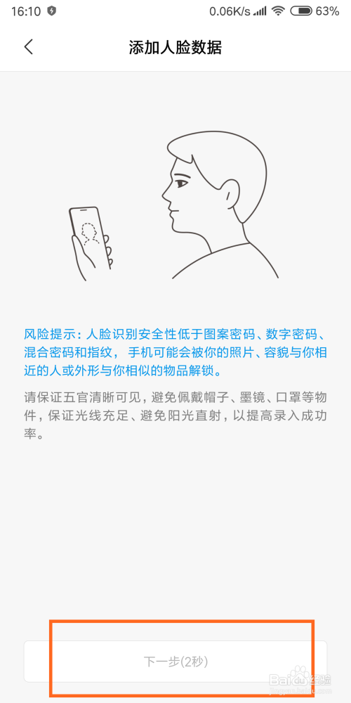 之后,将脸瞄准前置摄像头,呈现在方框内即可。