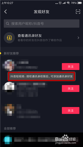 接下来呈现的权限中点击【许可】,如许在抖音中就能看到手机联系人了。