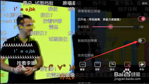 之后点击【智能防挡弹幕】后面的开关封闭它