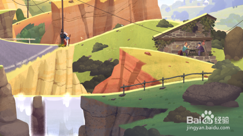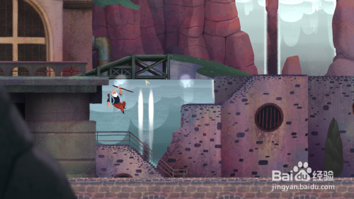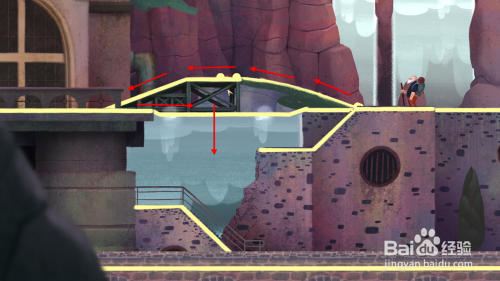 组合一个近似铁架桥的工具,然后从上面穿曩昔后往右走跳出水中。