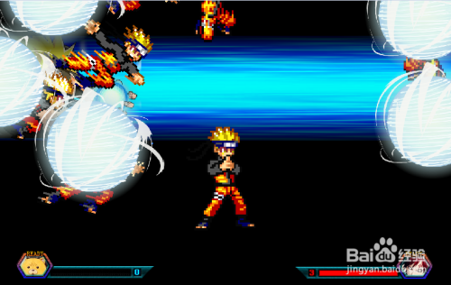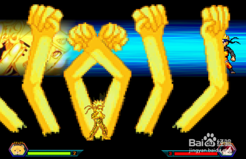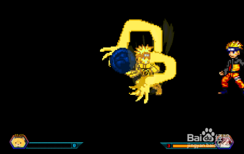 当气满3格,鸣人是可以变身九从头至尾模式的,同时按住J+K键耗损3格气变身,变死后招式也会分歧,等于说拥有一个鸣人,就有2种分歧的招数,如下图;