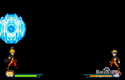 利用组合键W+I必杀:左边是仙人鸣人的螺旋丸,右边是变身九从头至尾鸣人后的九从头至尾招数;