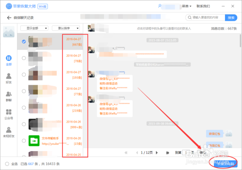 阐发竣事之后,我们就可以看到被扫描出来的微信聊天记实数据了,只要找到本身想恢复的微信记实数据,然后点击“恢复到电脑”按钮,就可以将微信聊天记实导出到电脑上查看和保留了。