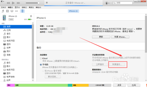 当我们想要恢复备份的时辰,也只需要,加需要恢复数据的手机毗连到电脑上,然后打开iTunes软件,找到之前的备份文件,点击“恢复备份”就可以了;