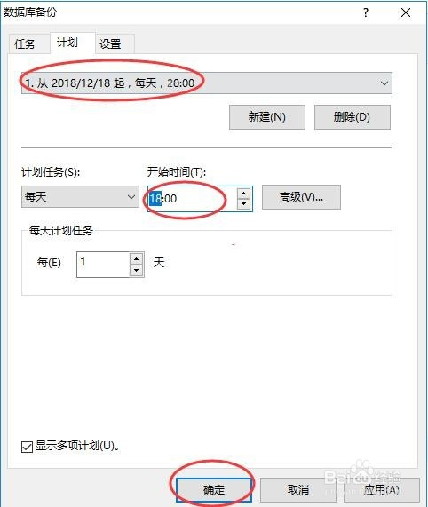 设置备份的频率和时候,这里设置为天天18时,然后点击“确定”,如下图所示: