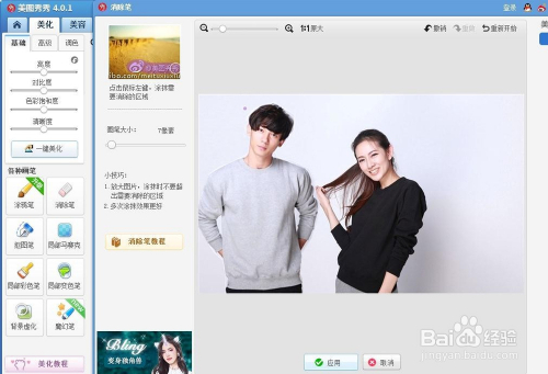 第九步:在“美化”中选择“消弭笔”,对抠取的人物边缘进行简单的处置。
