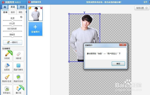 第五步:把抠好的人物图片存储为素材,存储位置为“饰品--用户自界说”。